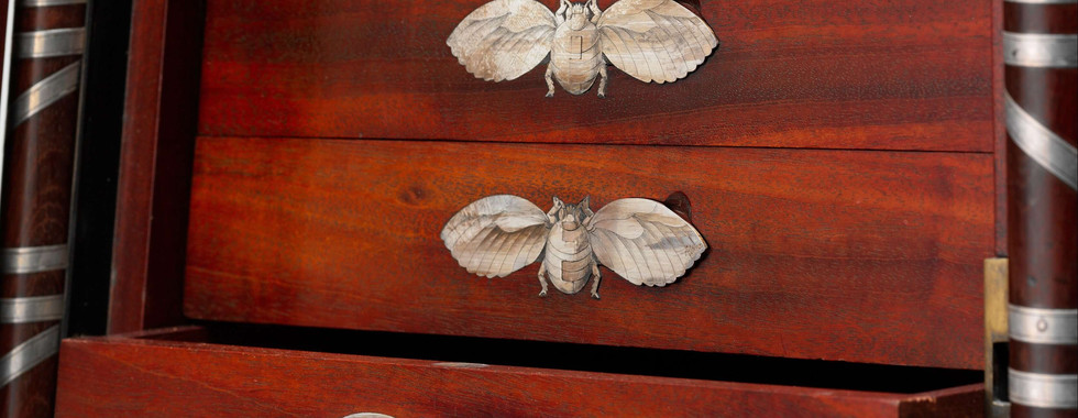 Médio: mogno (provavelmente Swietenia mahagoni), prata aplicada e incrustada